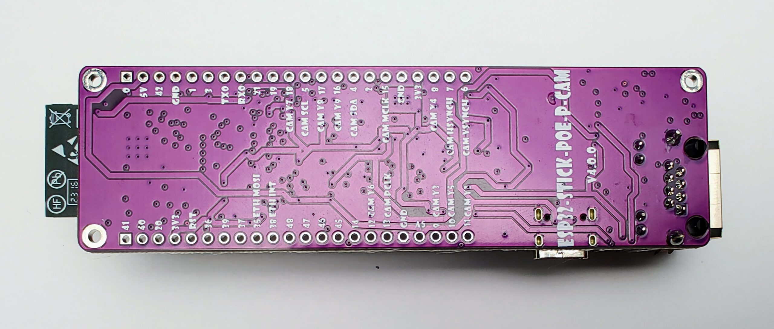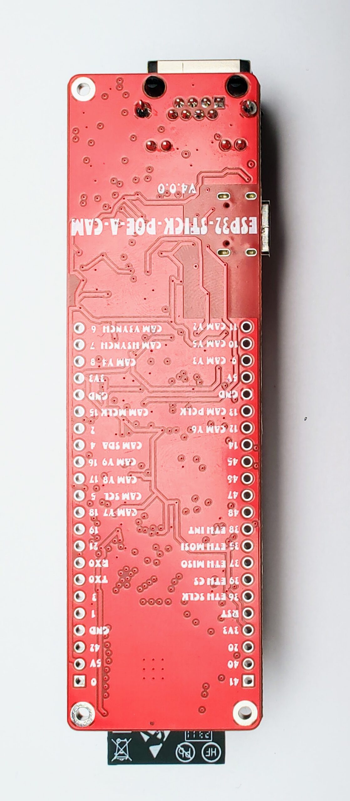 - Esp32-Stick-Eth-Cam – no PoE, powered via USB or external pins, no headers soldered
